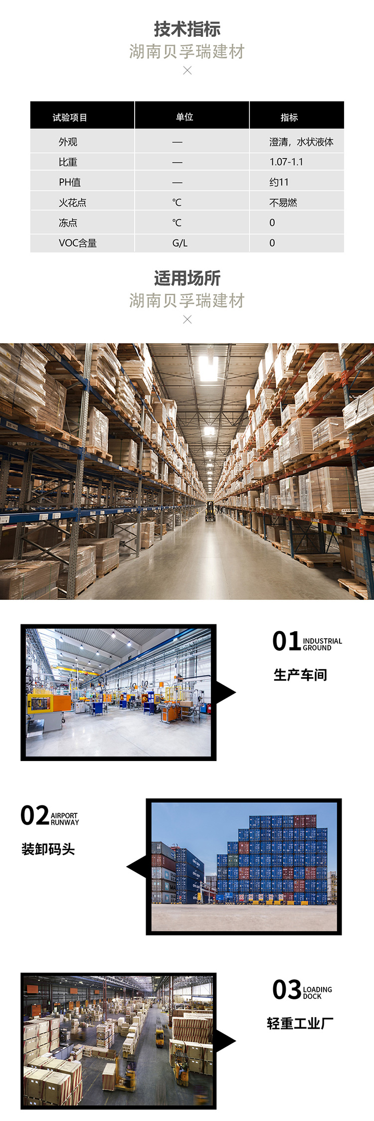 工業(yè)地坪、車間地坪、超市地坪、混凝土停車場、混凝土高速公路、機(jī)場跑道、混凝土橋梁、混凝土碼頭、混凝土墻面、體育場所、所有以混凝土或水泥砂漿為基層的場所。